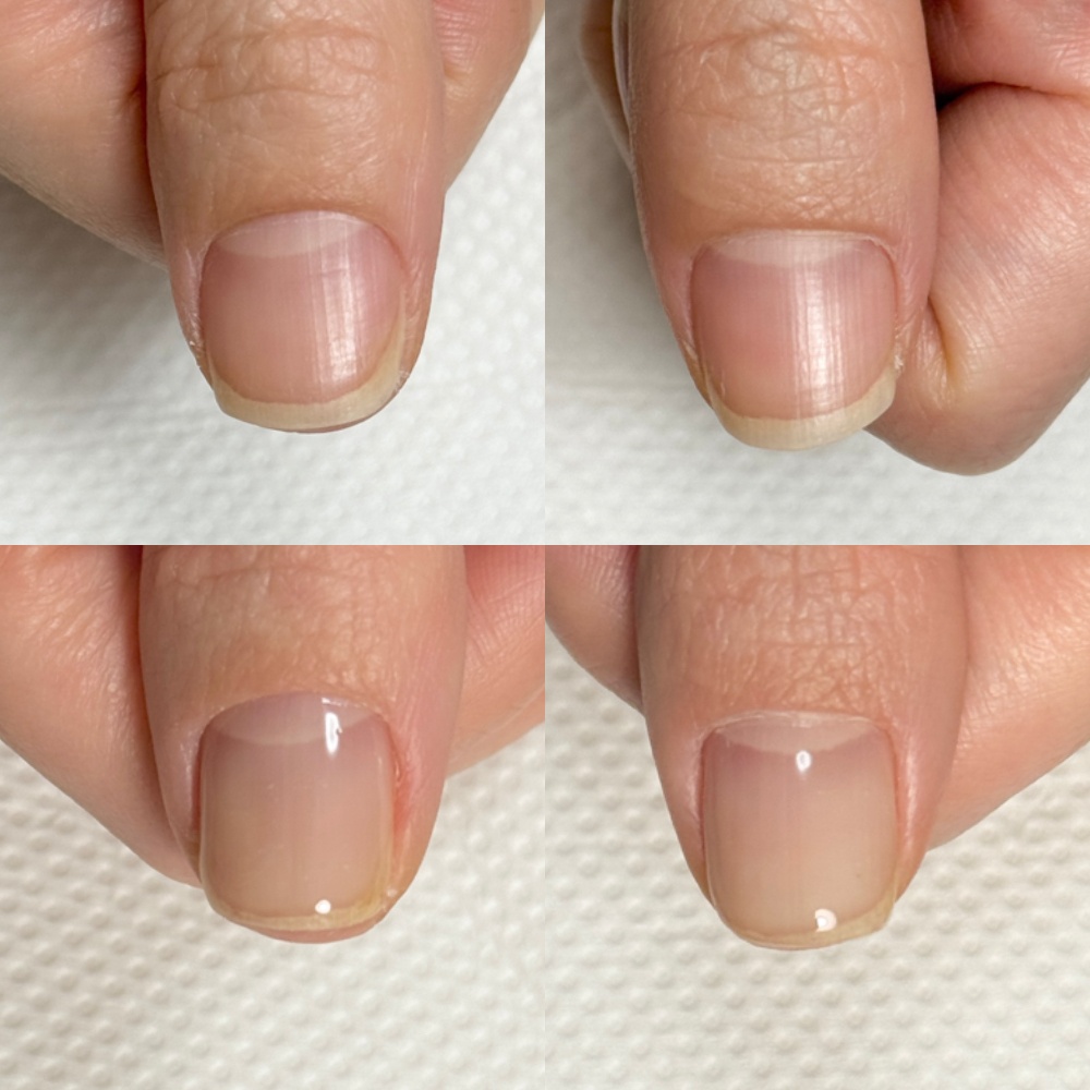自爪育成の施術を続けさせていただいているお客様の爪を比較してみると